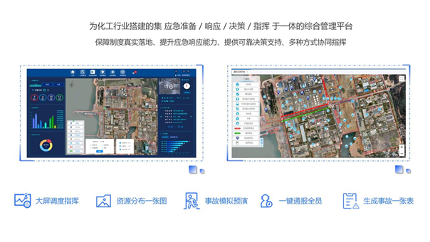 應(yīng)急指揮平臺以“安全監(jiān)管、安防監(jiān)控、監(jiān)測預(yù)警和應(yīng)急救援四位一體”的建設(shè)思路,涵蓋應(yīng)急值守、資源保障、應(yīng)急指揮、應(yīng)急演練、事故模擬、輔助決策等業(yè)務(wù)模塊,結(jié)合GIS地圖、指揮調(diào)度平臺、事故模擬算法等手段,保障制度真實落地,為現(xiàn)場提供可靠決策支持,提升應(yīng)急響應(yīng)能力,降低事故發(fā)生后造成的經(jīng)濟損失。