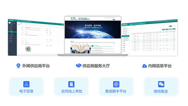 供應(yīng)商服務(wù)平臺(tái)是企業(yè)物資采購(gòu)部門(mén)為供應(yīng)商提供的一站式線上服務(wù)平臺(tái),為供應(yīng)商提供電子簽章線上授權(quán)、中標(biāo)通知書(shū)推送、代理服務(wù)費(fèi)發(fā)票推送、順豐快遞平臺(tái)數(shù)據(jù)集成、合同線上審批等服務(wù),打造“資料快遞不用跑、一鍵授權(quán)用一年、業(yè)務(wù)流程透明可控”的營(yíng)商環(huán)境新生態(tài)。