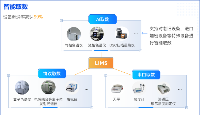 面對實(shí)驗(yàn)設(shè)備人工取數(shù)工作量大、效率低、易出錯(cuò)的問題,金現(xiàn)代LIMS系統(tǒng)通過AI識別技術(shù),實(shí)現(xiàn)了對老舊設(shè)備、進(jìn)口設(shè)備乃至加密設(shè)備的智能取數(shù)與高效聯(lián)通,設(shè)備調(diào)通率高達(dá)99%,大幅提升了實(shí)驗(yàn)室的數(shù)據(jù)采集效率和質(zhì)量,為后續(xù)的數(shù)據(jù)分析與決策提供了堅(jiān)實(shí)基礎(chǔ)。