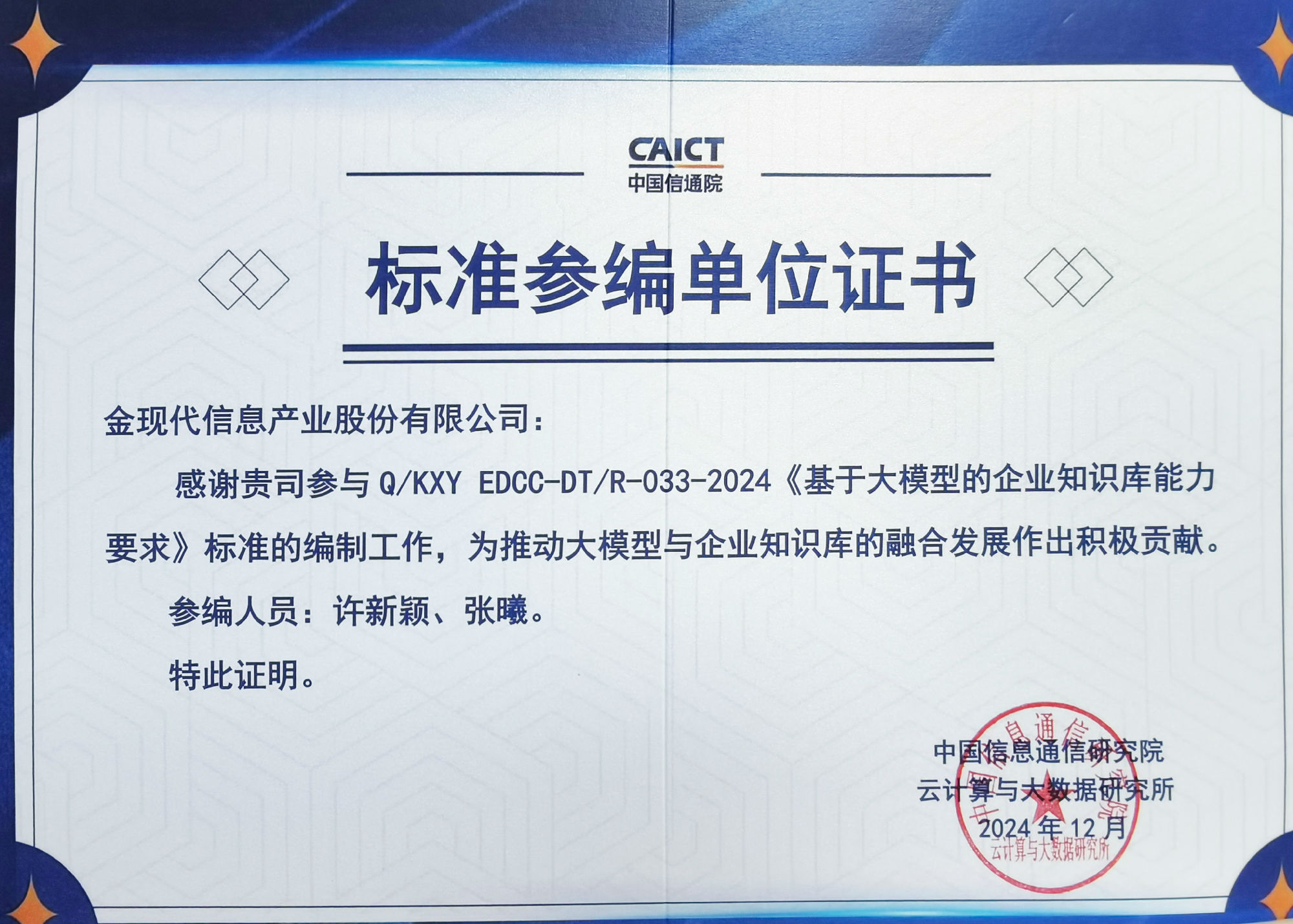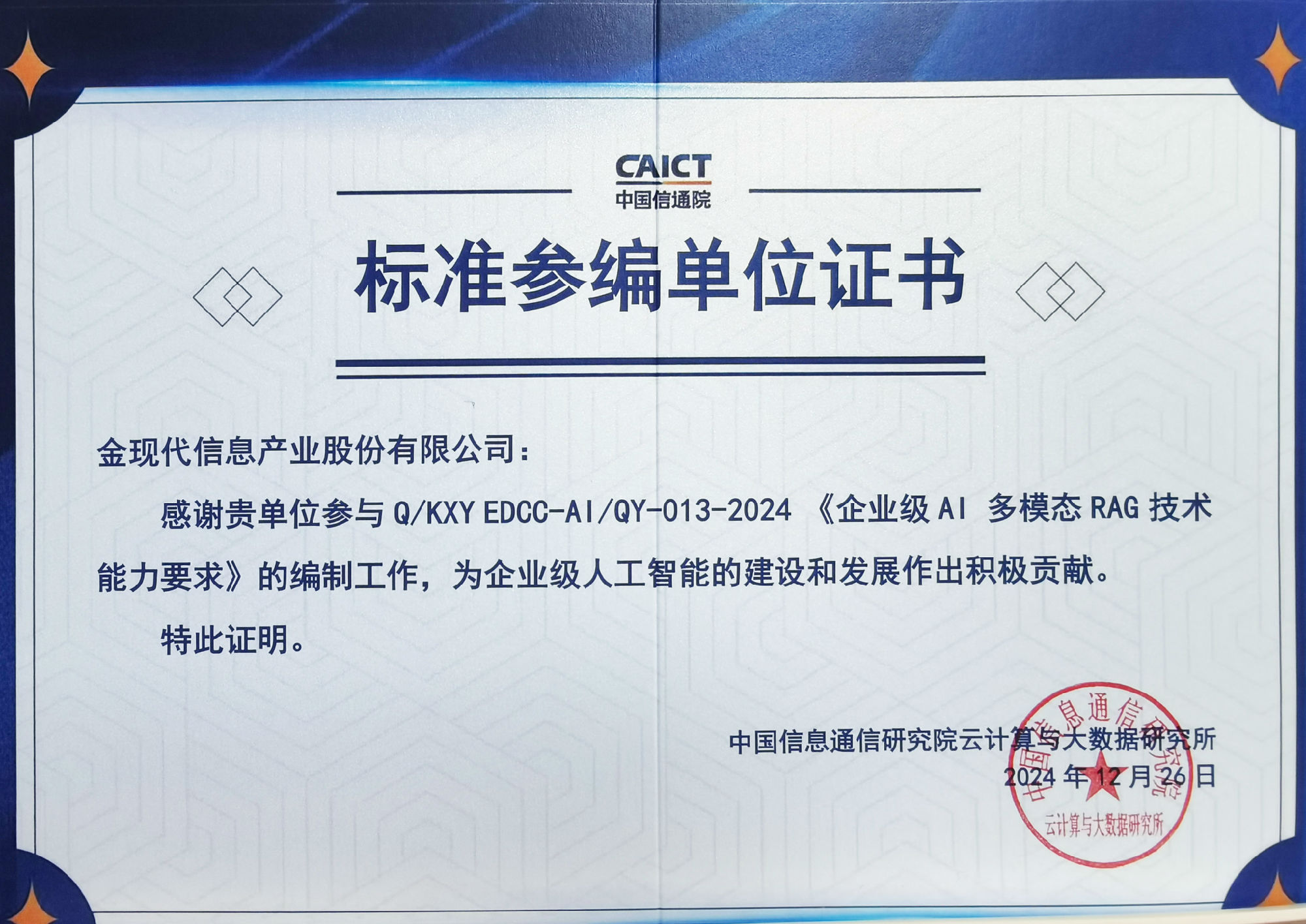 金現(xiàn)代參編中國信通院6項大模型標(biāo)準(zhǔn),推動企業(yè)級AI應(yīng)用落地
