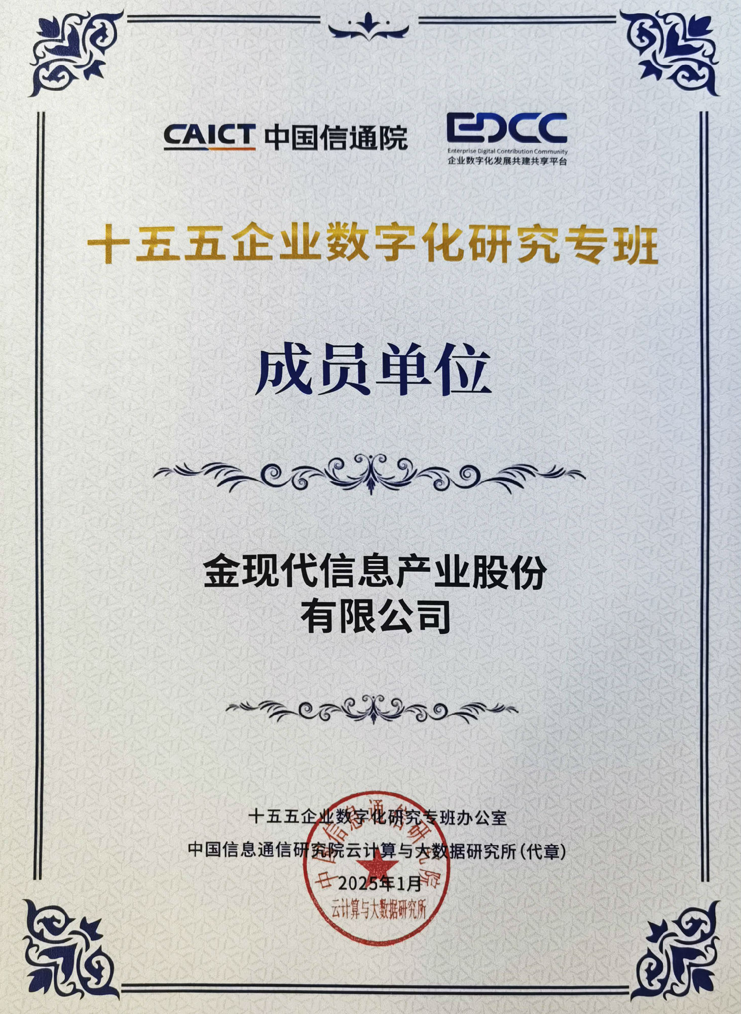 中國信通院“十五五”企業(yè)數(shù)字化研究專班成立,金現(xiàn)代為首批成員單位