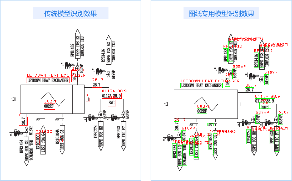 傳統(tǒng)模式識別和圖紙專用模型識別效果對比