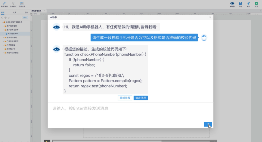 金現(xiàn)代基于智譜華章GLM大語言模型構(gòu)建了低代碼領(lǐng)域的專有大模型,實現(xiàn)了數(shù)據(jù)模型的自動生成、表單自動構(gòu)建、智能模塊推薦等功能,使低代碼開發(fā)平臺具備利用自然語言對話編程的能力,可以使開發(fā)效率提升50%-80%。
