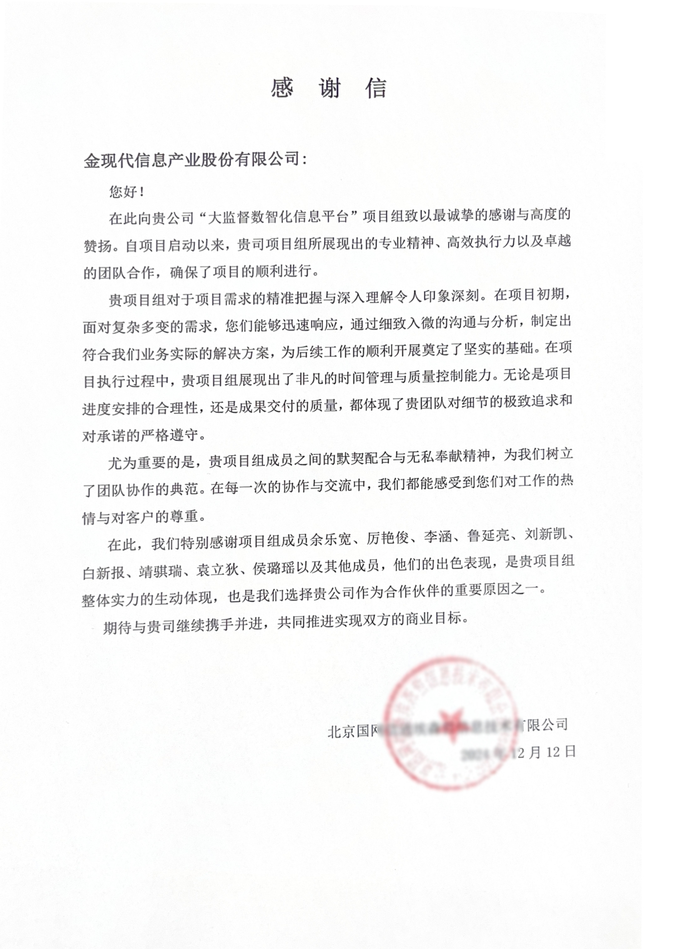 “貴項目組成員之間的默契配合與無私率獻精神,為我們樹立了團隊協(xié)作的典范?!?/span>