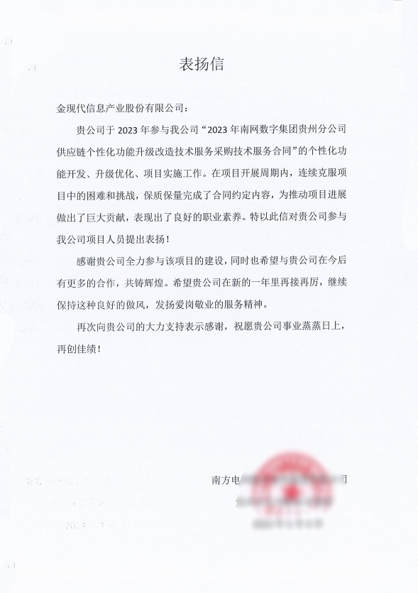 作為國家電網(wǎng)數(shù)字化核心服務商之一,金現(xiàn)代在2024年深度參與國網(wǎng)新能源、智能充電樁、電力交易、監(jiān)督管理等項目,獲得眾多客戶表揚信。比如在大監(jiān)督數(shù)智化信息平臺建設項目中,金現(xiàn)代聯(lián)合北京國網(wǎng)信通埃森哲,以云平臺、數(shù)據(jù)中臺、技術中臺為基礎,打造具有冀北特色“1234”的清廉冀北數(shù)智化大監(jiān)督平臺,綜合提升物資采購、營銷服務、工程項目等專項監(jiān)督成效,助力公司高質量發(fā)展。