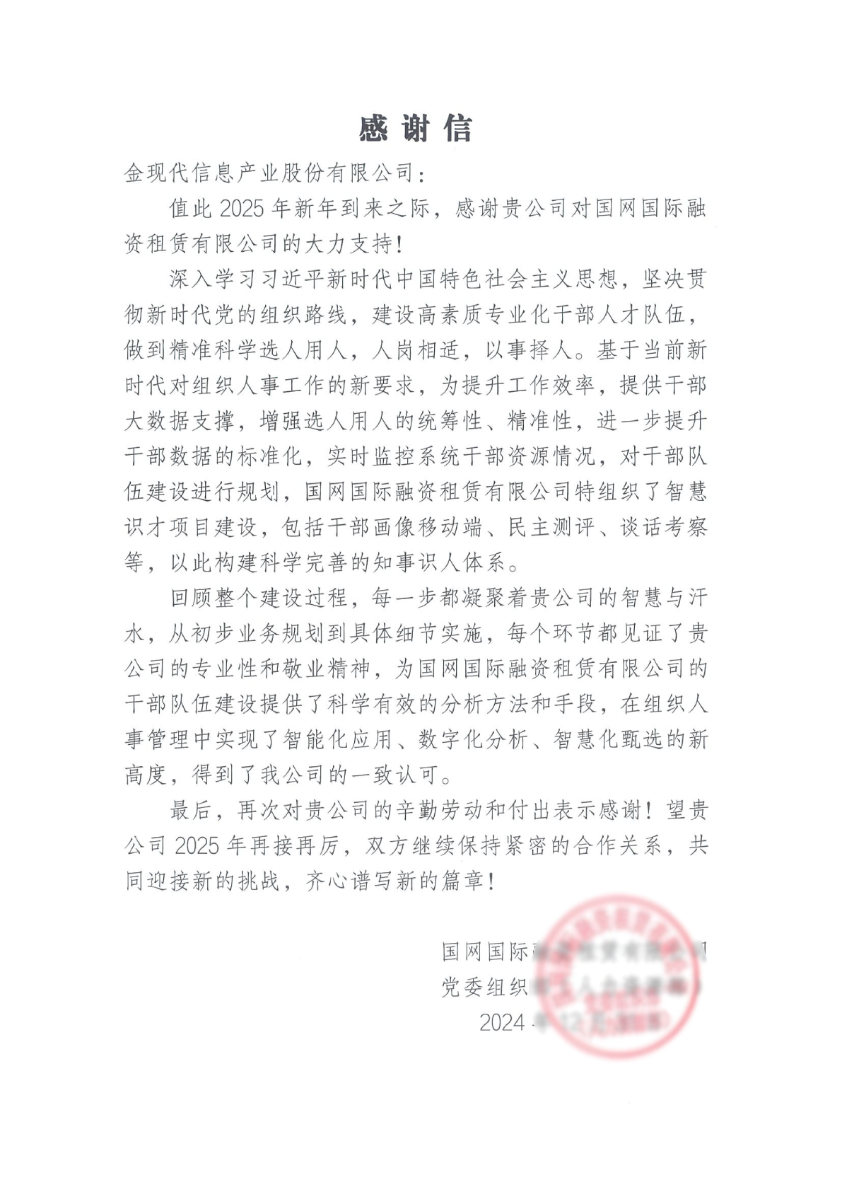 國網(wǎng)國際融資租賃有限公司是國家電網(wǎng)全資企業(yè),在全國能源電力行業(yè)融資租賃企業(yè)排名第1位。金現(xiàn)代基于新時代對央國企組織人事工作的新要求,為其干部隊伍建設提供了科學有效的分析方法和手段,在組織人事管理中實現(xiàn)了智能化應用、數(shù)字化分析、智慧化甄選的新高度。
