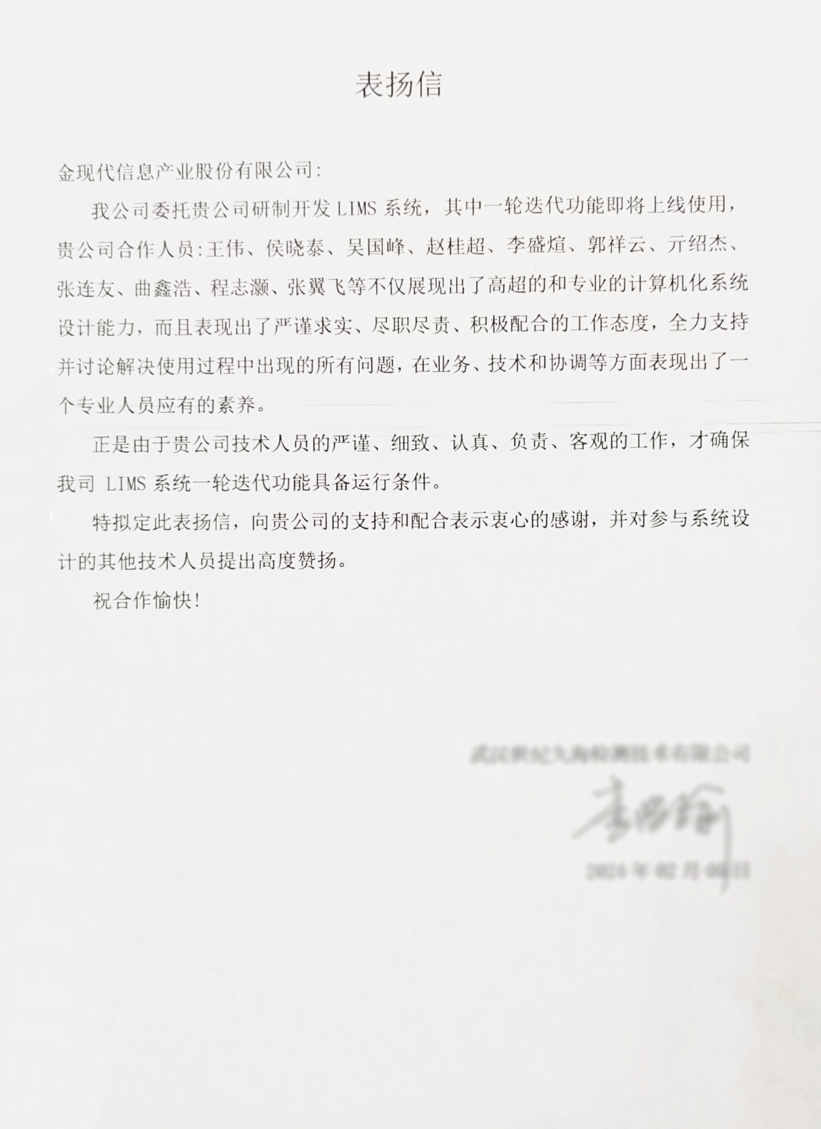 “正是貴公司技術人員嚴謹、細致、認真、負責、客觀的工作,才確保LIMS系統(tǒng)的平穩(wěn)運行?!?/span>