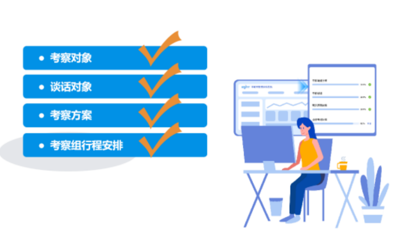 系統(tǒng)支持對考察機構(gòu)、考察組成員、考察方案、談話提綱、談話人等信息的靈活配置,通過簡單的“點一點、選一選”,即可完成考察組成員分配、考察行程安排等設(shè)置,可幫助組織部快速制定考察方案。在考察方案中,系統(tǒng)可以動態(tài)配置談話提綱和談話人權(quán)重占比,讓組織部后續(xù)開展考察工作“拿來即用”。