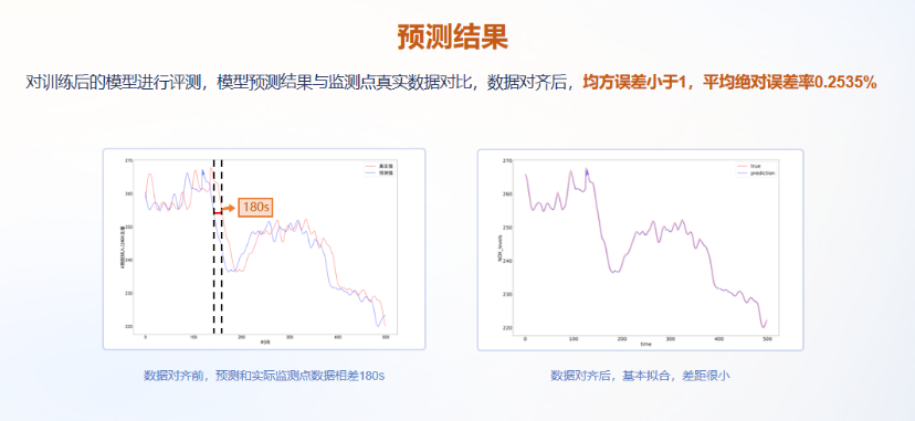 從預(yù)測結(jié)果來看:左圖中,模型對180秒后氮氧化物含量的預(yù)測曲線與實(shí)際監(jiān)測曲線幾乎完全重疊(左推3分鐘后對齊),均方誤差小于1,預(yù)測精度已經(jīng)達(dá)到工業(yè)應(yīng)用標(biāo)準(zhǔn)。這個案例充分證明,大模型在工業(yè)過程控制中完全能夠發(fā)揮關(guān)鍵作用。