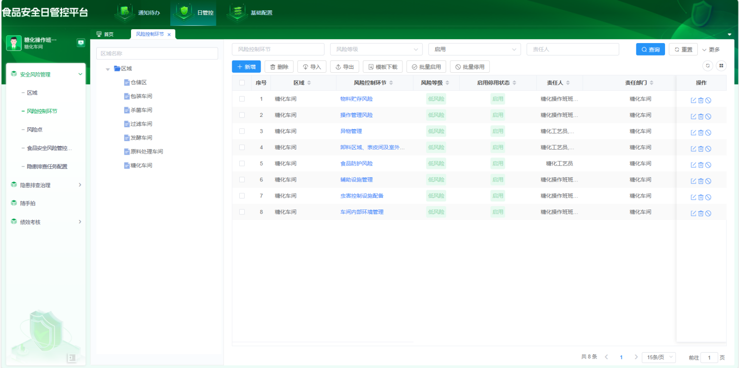 構(gòu)建標(biāo)準(zhǔn)化日管控風(fēng)險管控體系,依據(jù)區(qū)域、風(fēng)險控制環(huán)節(jié)、風(fēng)險點等信息,自動生成安全風(fēng)險管控清單,實現(xiàn)風(fēng)險的分級管控,并將責(zé)任分解到各層級崗位,確保管控措施得到有效實施。