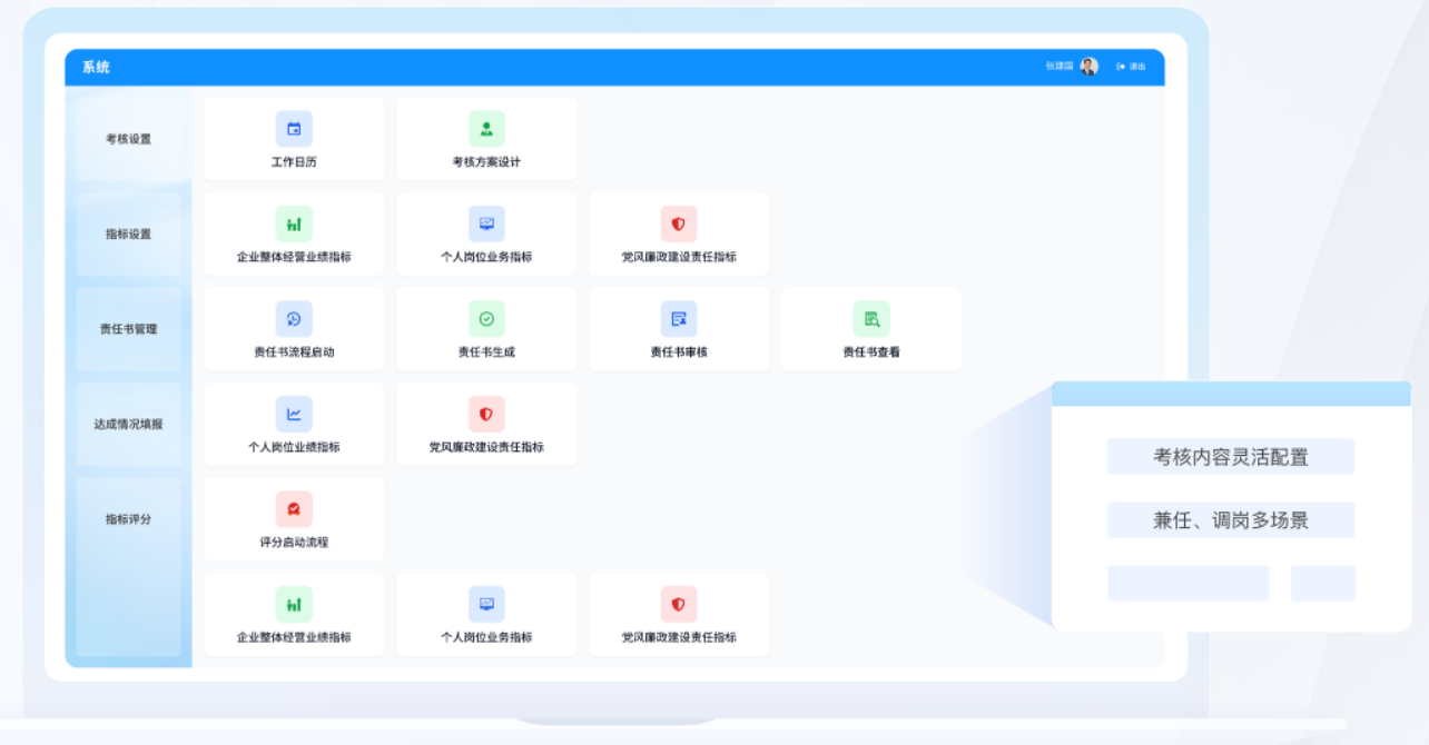 基于崗位對(duì)企業(yè)經(jīng)理層人員的考核內(nèi)容,實(shí)現(xiàn)方案管理、指標(biāo)設(shè)置、達(dá)成情況填報(bào)(指標(biāo)完成情況、自評(píng))、評(píng)價(jià)打分、結(jié)果計(jì)算的全過程管理,實(shí)現(xiàn)對(duì)企業(yè)經(jīng)理層成員的責(zé)任書生成和契約化考核。某制造企業(yè)應(yīng)用后,考核周期縮短60%,并實(shí)現(xiàn)考核結(jié)果自動(dòng)關(guān)聯(lián)薪酬、晉升與退出機(jī)制,使干部契約精神強(qiáng)化率提升55%,組織目標(biāo)達(dá)成率提高40%。