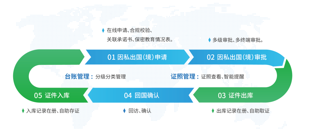 對(duì)領(lǐng)導(dǎo)干部證照、因私出國全過程電子化管理,實(shí)現(xiàn)過程實(shí)時(shí)監(jiān)督,從嚴(yán)管控和規(guī)范領(lǐng)導(dǎo)干部的出國(境)行為。某集團(tuán)試點(diǎn)后,出國審批周期縮短65%。