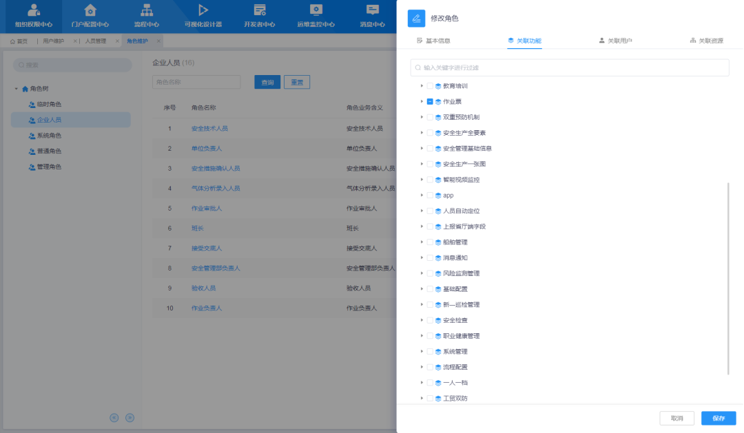 HSE系統(tǒng)不同角色權(quán)限配置頁面
