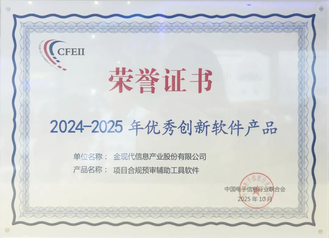 金現(xiàn)代獲得2024-2025 年度優(yōu)秀創(chuàng)新軟件產(chǎn)品