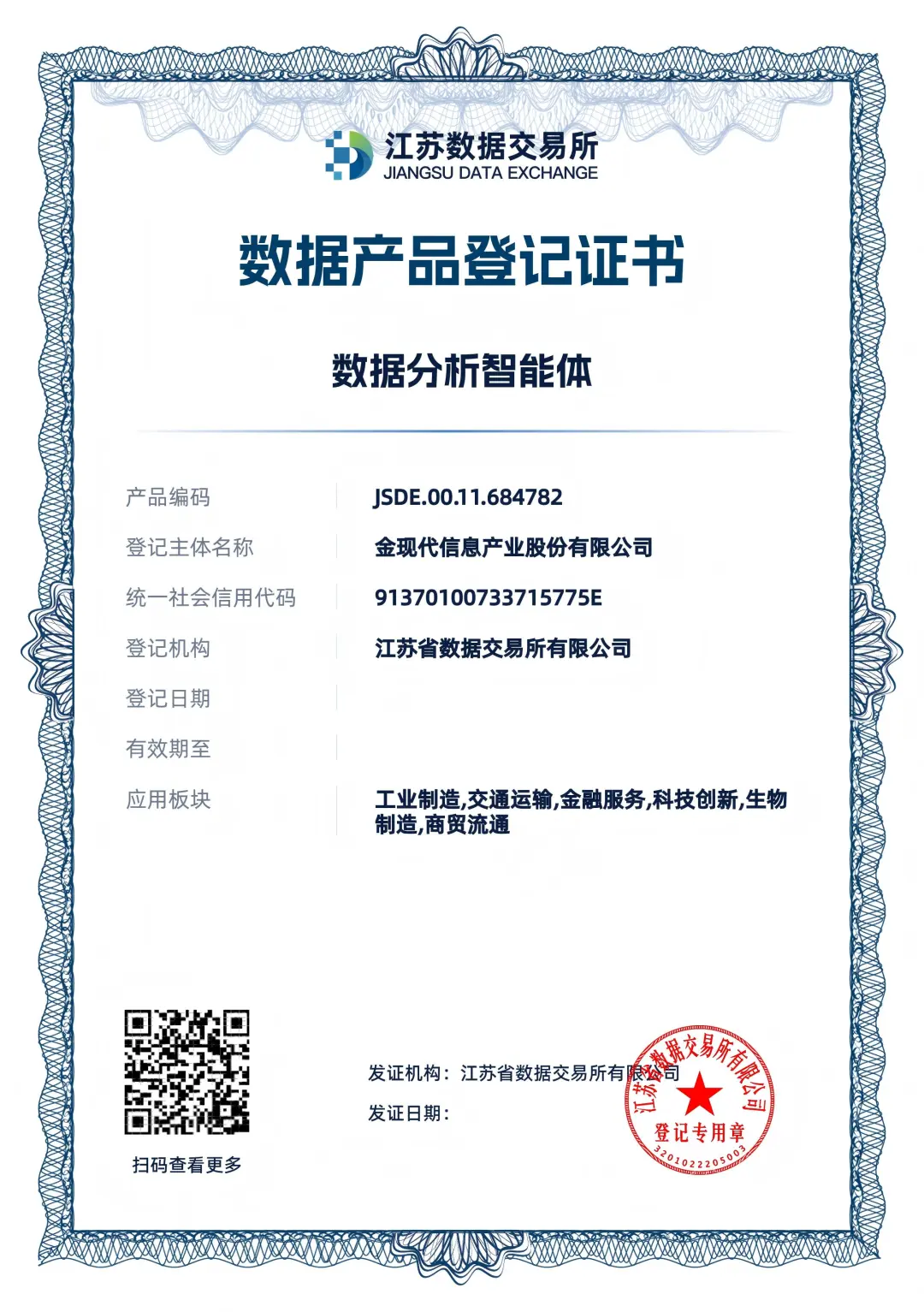 金現(xiàn)代“數(shù)據(jù)分析智能體”獲省級授牌,成功上架江蘇數(shù)交所